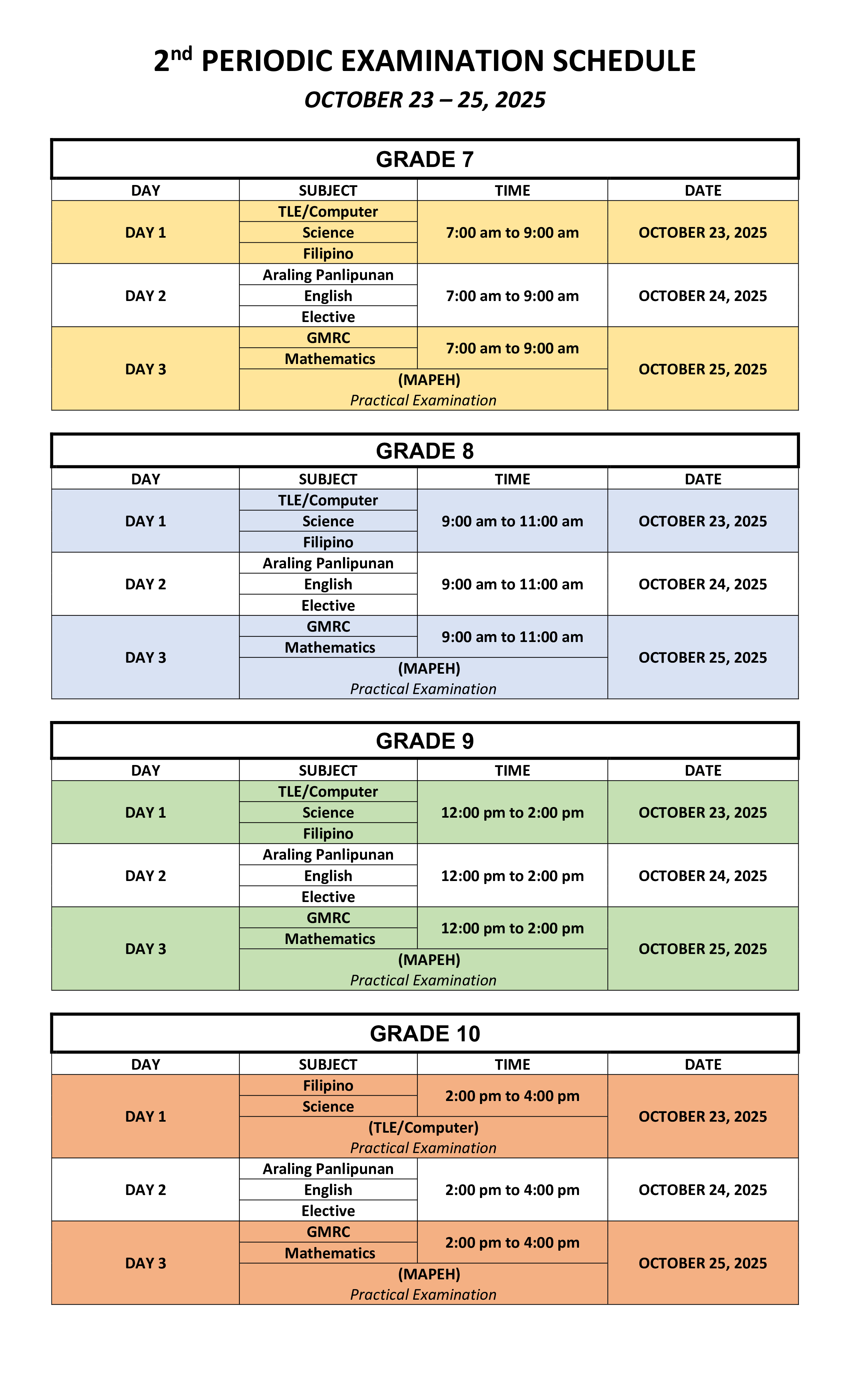 2nd PERIODIC EXAMINATION SCHEDULE and ROOM ASSIGNMENT (OCTOBER 23-25,...
